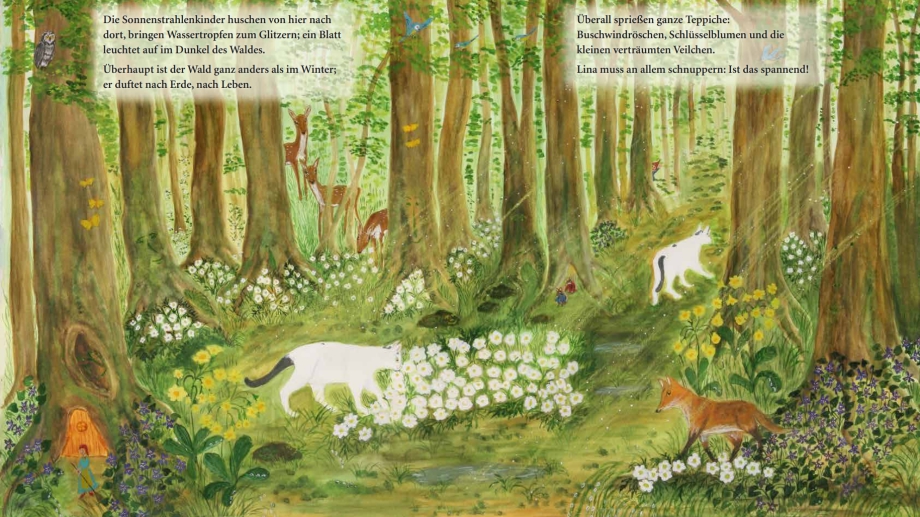 Im Wald blühen die ersten Blumen und Lina läuft immer ihrer Nase nach. Alles riecht so anders als im Winter.