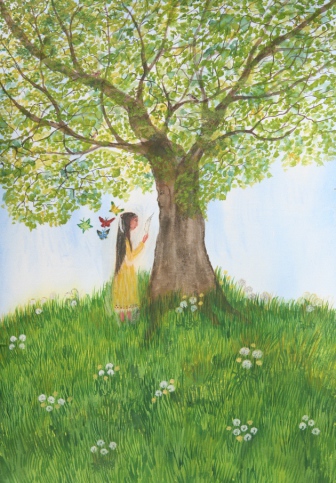 Der Frühling hat Einzug gehalten im Märchenwald und Lina wird von den Sonnenstrahlenkindern nach draußen gelockt.