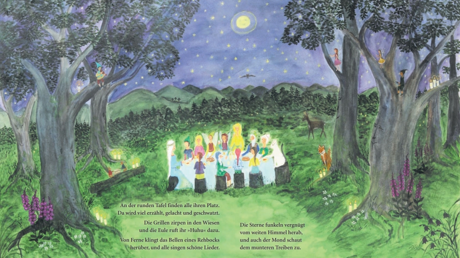 So treffen sich alle auf der Wiese am Wasserfall und feiern ein traumhaftes Fest in der lauen Sommernacht bis zum Morgengrauen…
